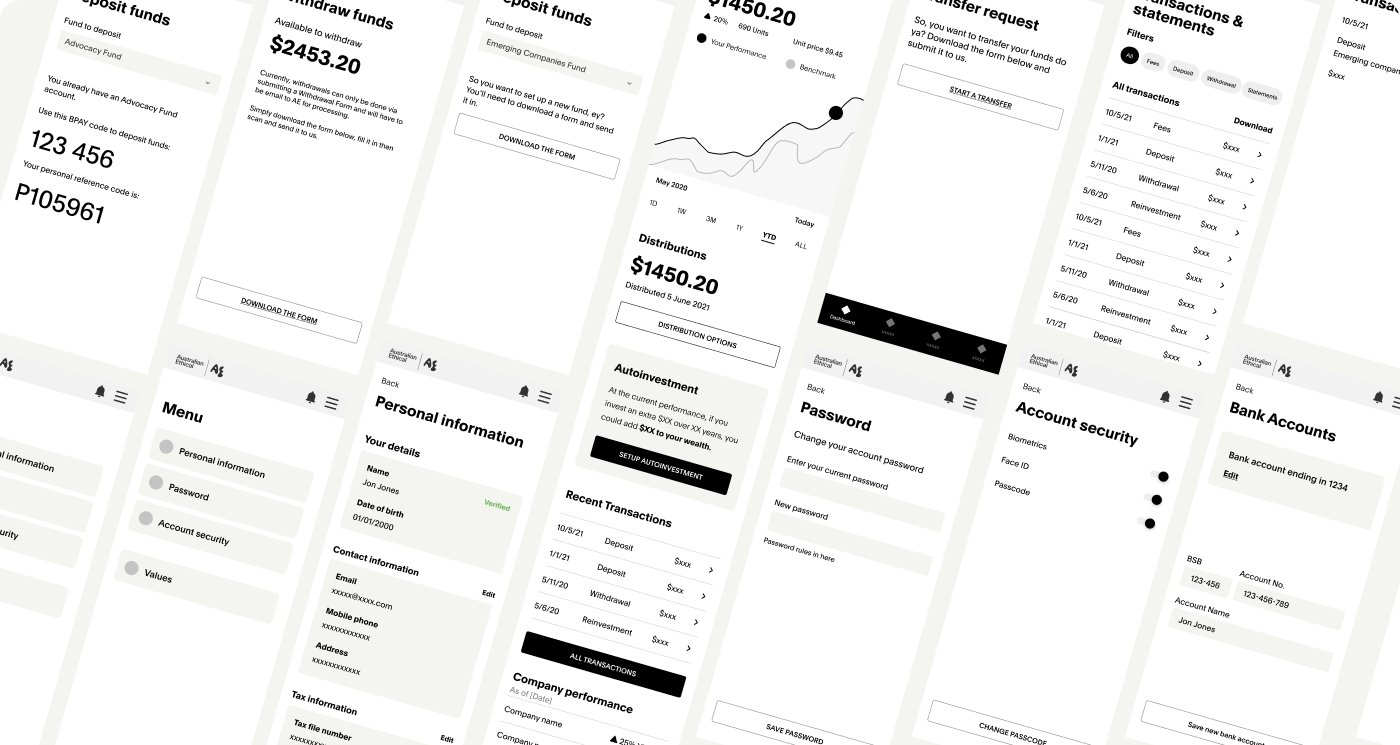 We transformed Australian Ethical's digital presence from a disconnected vendor experience to a cohesive, branded app. The design system provided a scalable foundation for future features, and the motion language established a quality bar for the product going forward.